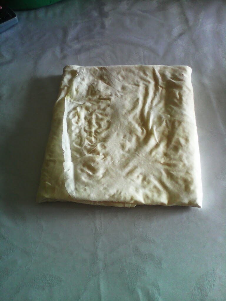 sos hazırlanır. Yufkayı tezgaha serip, hazırladığımız sosu fırça yardımıyla sürülür.